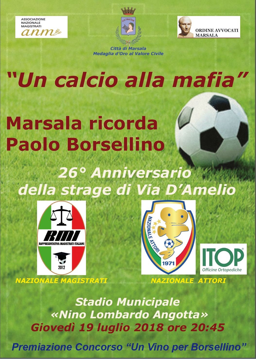 Nel 26° anniversario della strage di Via D'Amelio la sezione distrettuale dell'ANM di Marsala organizza l'evento sportivo "Un calcio alla mafia" che vedrà come squadre rivali la Nazionale Magistrati contro la Nazionale Attori.